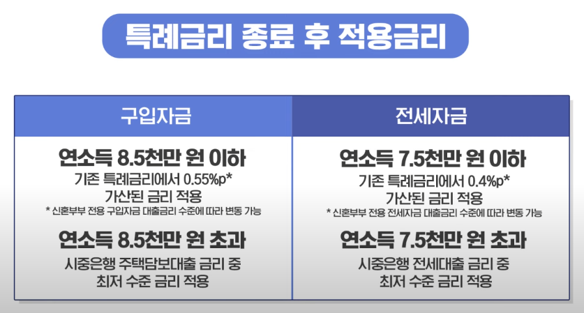 * 5년간 위의 특례금리 적용, 종료 후 대출받을 시 부부합산 소득에 따라 금리 적용
