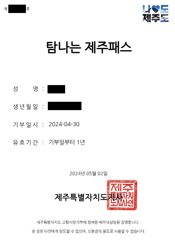 (사실 제주한달살이 할 예정으로 저 관광지 혜택을 보고 바로 기부했습니다.)