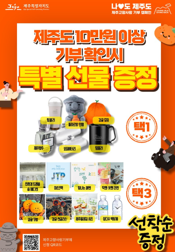제주도 10만원 이상 기부시 특별 선물 증정 캠페인은