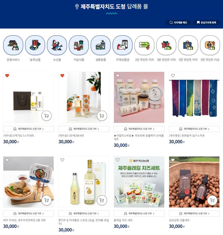 정부사이트에서 3만원 상당의 답례품도 온라인으로