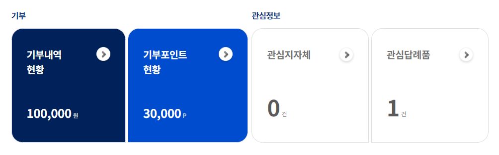 답례품의 경우 기부한 해당지자체몰에서 간편하게