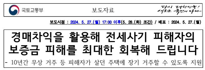 | 전세사기 피해자, 이제는 바로 지원받을 수 있어요! - "선구제 후회수"의 새로운 법안 (0) | 2024.05.28 |