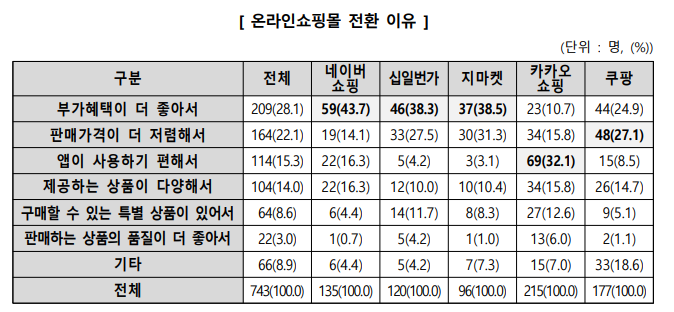 온라인 쇼핑 플랫폼의 만족도