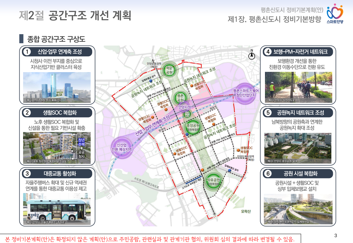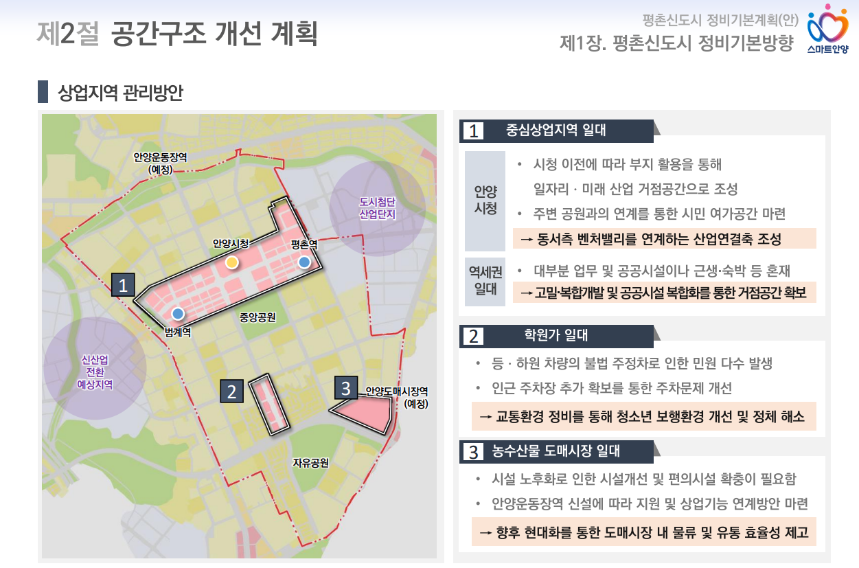 평촌신도시 정비계획의 핵심은 노후된 주거환경을 현대화하고, 도시의 자족 기능을 강화하는 데 있습니다. 이 계획은 안양시를 중심으로 이루어지며, 계획이 완료되면 평촌은 2035년까지 신산업 중심지로 탈바꿈할 예정입니다.