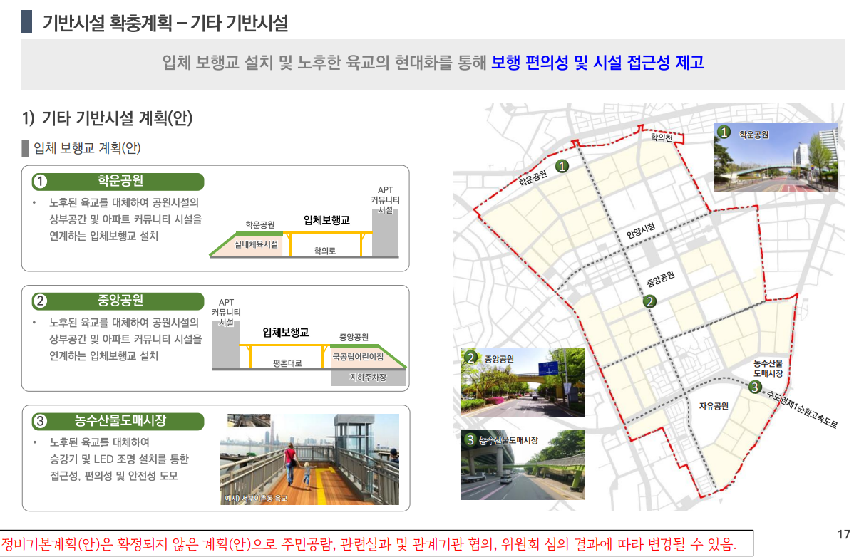 정비계획은 녹지 공간의 확충도 중점적으로 다루고 있습니다. 학운공원과 평촌공원, 중앙공원 등의 공원 복합화를 통해 도시 내 자연 공간을 확대하고, 주민들에게 쾌적한 생활 환경을 제공할 계획입니다.