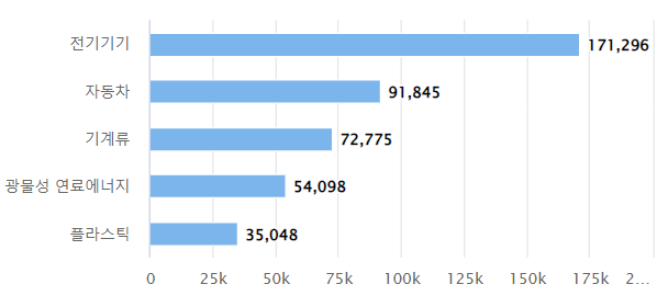 전기기기는 171,296백만달러로 가장 큰 규모의 수출을 하고 있고