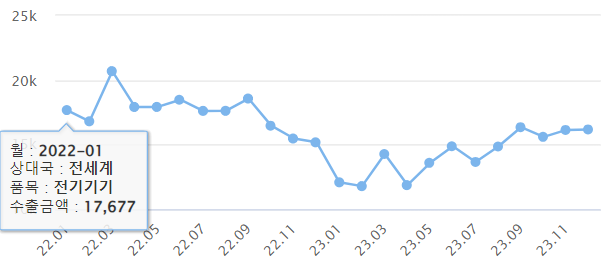 다행스러운점은 아래 그래프를 보시면 수출은 23년 1월을 기점으로