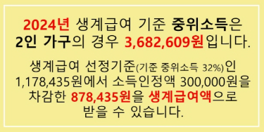 - 2024년 기준 생계급여 최저 보장 수준: