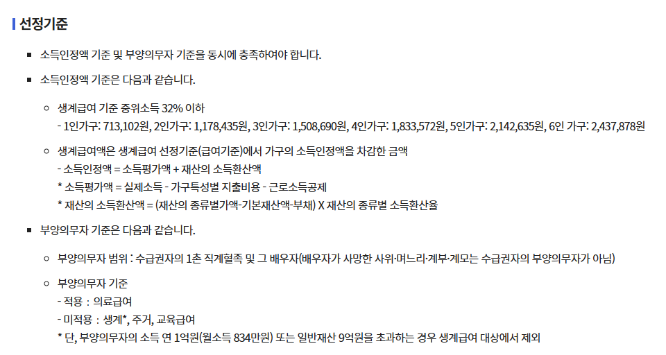 생계급여는 아래 기준을 충족하는 분들에게 지급됩니다.