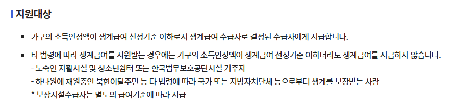 - 대상: 긴급 상황으로 생계 유지가 어려운 사람.