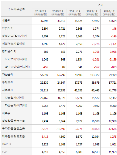 - EBITDA: EBITDA는 비용 구조와 자본 지출의 변화를 나타내며, 2021년 대비 2023년에 크게 감소했습니다. 이는 운영 효율성 감소 또는 자본 지출 증가를 시사합니다.