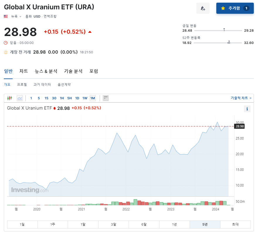 유망 ETF는 URA, 탄소배출권 ETF로 정했습니다. 이 ETF를 추세추종하겠다는 의미는