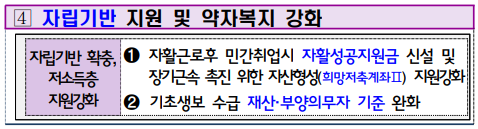 사회이동성 개선방안 요약 ④자립기반 지원 및 약자복지 강화