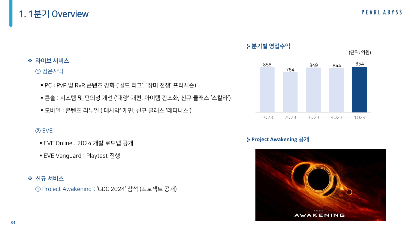 펄어비스가 2024년 1분기 실적을 발표했습니다.