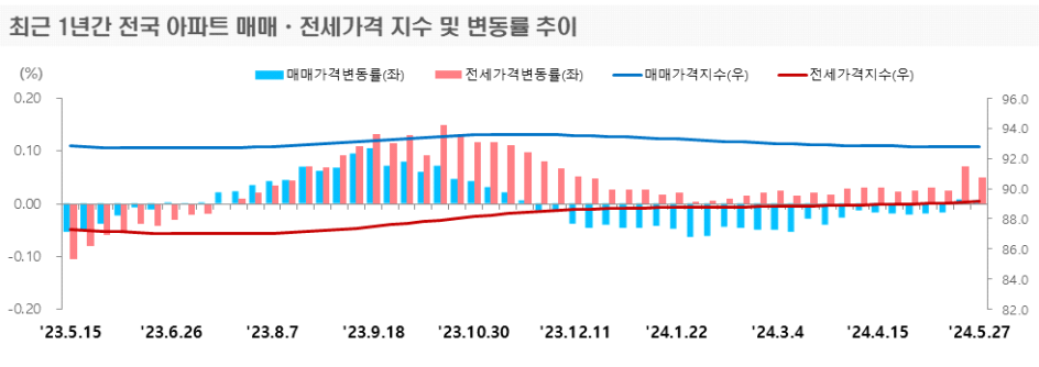 2024년 5월 4주 전국 주간 아파트 가격 동향