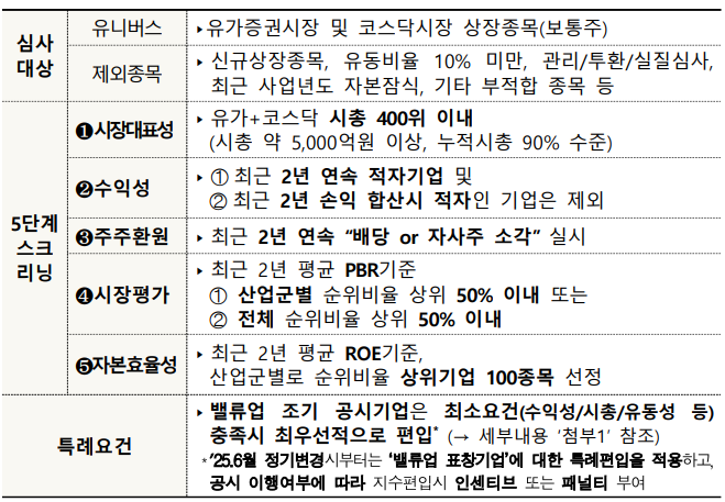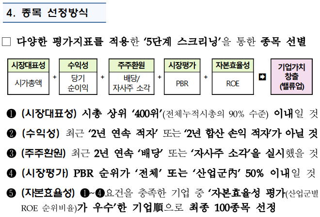 밸류업 지수의 선정 기준은 다음과 같습니다.