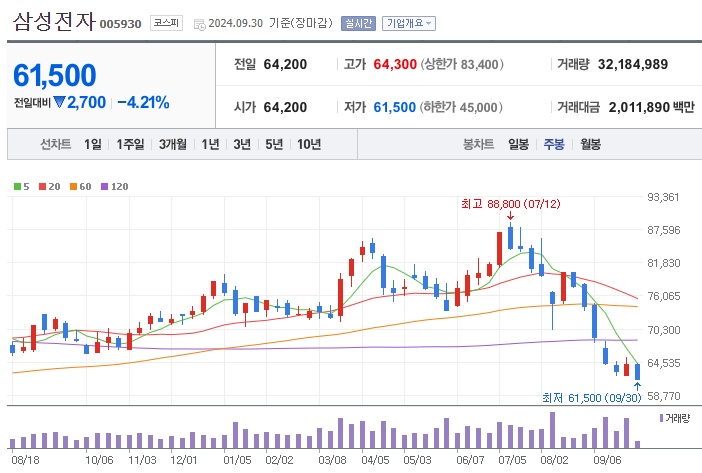 1. 삼성전자 주가 하락: 9월 한 달 동안 17.2% 하락