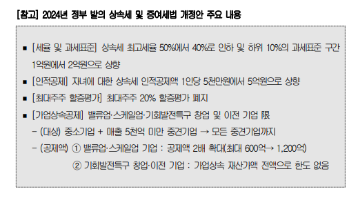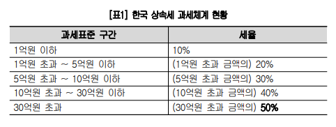 - 상속세율을 경제 성장을 저해하지 않는 수준으로 인하